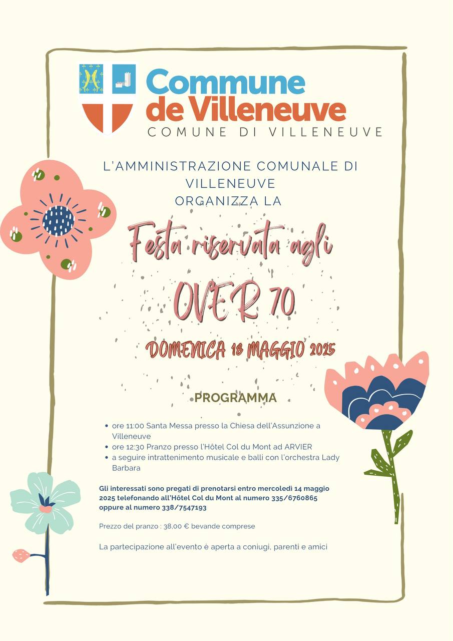 Sono aperte le prenotazioni per la Festa dedicata agli Over70 residenti a Villeneuve